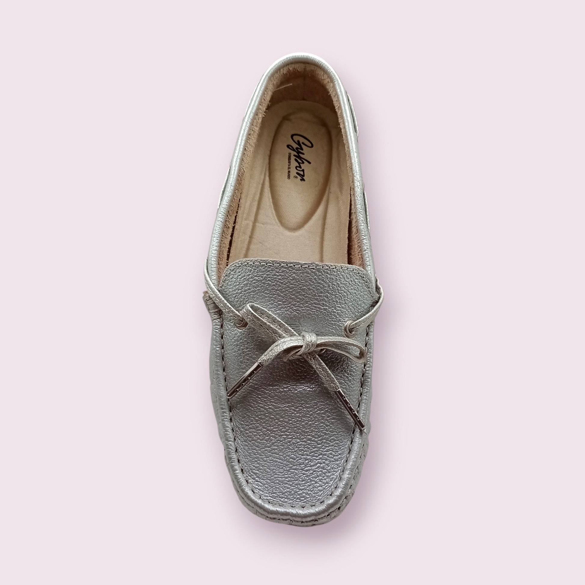Este mocasín para dama, confeccionado en 100% cuero, combina elegancia y comodidad. Su suela plana y resistente ofrece un soporte ideal para el uso diario, mientras que el tono plata aporta versatilidad para ocasiones formales o casuales. Un calzado de alta calidad diseñado para acompañar tu estilo con sofisticación y durabilidad.